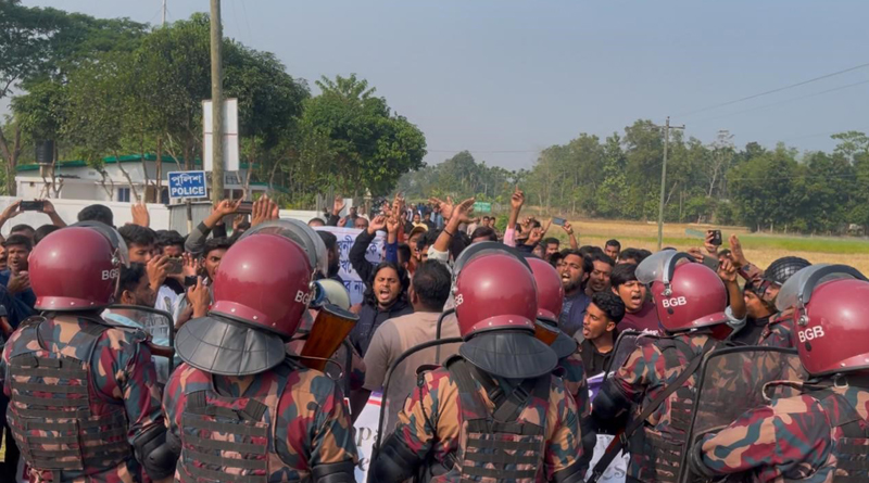 শনিবার ৭ ডিসেম্বর দুপুরে সাধারণ ছাত্র-জনতার ব্যানারে প্রতিবাদ সভা শেষে বিক্ষোভ মিছিল করে ভারতীয় সীমান্তের দিকে যান স্থানীয়রা। এসময় সীমান্তের জিরো পয়েন্টে বিজিবির ব্যারিকেডের সামনে বিক্ষোভ করেন তারা।