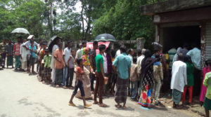 আব্দুর রব॥ হাকালুকি হাওরপারের বোরো ফসল হারানো হাজার হাজার কৃষকের দুর্ভোগ যেন থামছে না। ১৫ টাকা কেজি দরের ওএমএসের চাল বিক্রী ৮ মে থেকে শুরু হলেও তালিমপুর ইউনিয়নে চালু করা বিক্রয় কেন্দ্রটি দুর্গত এলাকা থেকে অনেক দুরবর্তী স্থানে হওয়ায় এর সুফল ভোগ করেননি প্রকৃত ক্ষতিগ্রস্তরা। অবশেষে মঙ্গলবার থেকে হাওরপারের কানুনগো বাজারে চালু হয় খোলা বাজারে চাল বিক্রী। তবে চাহিদার তুলনায় সরবরাহ কম থাকায় ঘন্টার পর ঘন্টা লাইনে দাঁড়িয়েও দুর্গত মানুষজন শেষ পর্যন্ত চাল না পেয়ে খালি হাতেই ফিরছেন।