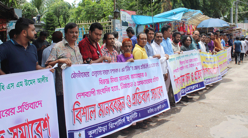 (ভিডিও সহ) সাংবাদিক হয়রানির প্রতিবাদে কুলাউড়ায় সাংবাদিক সহ সর্বস্থরের মানুষের প্রতিবাদ