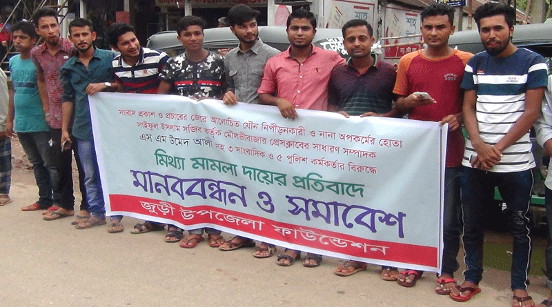 (ভিডিও সহ ) জুড়ীতে সাংবাদিকের বিরুদ্ধে মিথ্যা মামলা দায়ের ও পরবর্তীতে হুমকীর প্রতিবাদে মানববন্ধন ও প্রতিবাদ সমাবেশ
