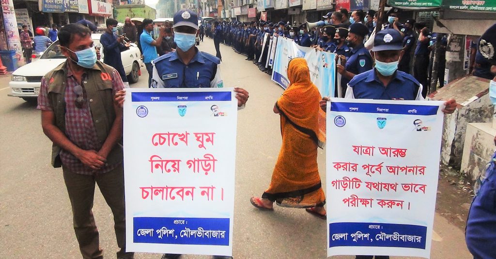 (ভিডিওসহ) মৌলভীবাজার জেলা পুলিশের উদ্যোগে ‘জাতীয় নিরাপদ সড়ক দিবস’ পালিত