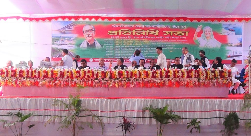 মৌলভীবাজার কেন্দ্রীয় শহীদ মিনার প্রাঙ্গণে জেলা আওয়ামীলীগের সভাপতি ও মৌলভীবাজার-৩ আসনের এমপি নেছার আহমদের সভাপতিত্বে ও ও সাধারণ সম্পাদক ও জেলা পরিষদের চেয়ারম্যান আলহাজ¦ মিছবাহুর রহমান এর পরিচালনায় প্রতিনিধি সভায় প্রধান অতিথির বক্তব্য রাখেন আওয়ামীলীগের প্রেসিডিয়াম সদস্য ও সাবেক মন্ত্রী নুরুল ইসলাম নাহিদ এমপি। বিশেষ অতিথি ছিলেন আওয়ামীলীগের প্রেসিডিয়াম সদস্য জাহাঙ্গীর কবির নানক, কেন্দ্রীয় আওয়ামী লীগের সাংগঠনিক সম্পাদক আহমদ হোসেন, পরিবেশ ,বন ও জলবায়ু পরিবর্তন বিষয়ক মন্ত্রী মোঃ শাহাব উদ্দিন, উপাধ্যক্ষ আব্দুস শহীদ এমপি, কেন্দ্রীয় আওয়ামীলীগের উপ-দপ্তর সম্পাদক সায়েম খান, কেন্দ্রীয় আওয়ামীলীগ সদস্য আজিজুস সামাদ আজাদ ডন, সংরক্ষিত নারী আসনের সংসদ সদস্য সৈয়দা জোহুরা আলাউদ্দিন এমপি।