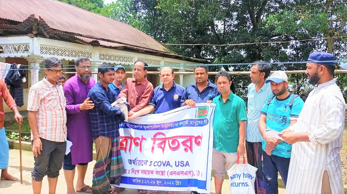 স্টাফ রিপোর্টার॥ সিলেটে বসবাসকারী মৌলভীবাজার জেলাবাসীর সংগঠন‘মৌলভীবাজার সমিতি সিলেট,এর উদ্যেগে মৌলভীবাজার জেলার কুলাউড়া উপজেলার ভূকশিমইল ইউনিয়নের বিভিন্ন গ্রামে বন্যাদূর্গত মানুষের মাঝে শুকনো খাবার ও নগদ টাকা বিতরনকরেন।। ইউনিয়নের ৯টি স্থানে এই কার্যক্রম করা হয়।
