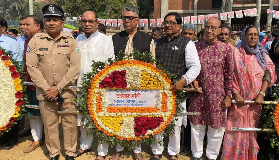মঙ্গলবার সকাল সাড়ে ১০টায় জেলা প্রশাসনের আয়োজনে পুষ্পস্তবক অর্পণের মধ্য দিয়ে শ্রদ্ধা জানান, জেলা প্রশাসক মীর নাহিদ আহসান, সংসদ সদস্য ও জেলা আওয়ামীলীগ সভাপতি নেছার আহমদ, সংরক্ষিত মহিলা সংসদ সদস্য সৈয়দা জোহরা আলাউদ্দিন, জেলা পরিষদের চেয়ারম্যান মিছবাহুর রহমান, পুলিশ সুপার মোঃ জাকারিয়া, পৌর মেয়র ফজলুর রহমান, সদর উপজেলা চেয়ারম্যান মোঃ কামাল হোসেন, মুক্তিযোদ্ধা সংসদ এর পক্ষে সাবেক জেলা কমান্ডার জামাল উদ্দিনসহ বিভিন্ন সরকারী-বেসরকারি প্রতিষ্ঠান, রাজনৈতিক, সামাজিক, সাংস্কৃতিক সংগঠন ও স্কুল-কলেজের শিক্ষক-শিক্ষর্থীরা।