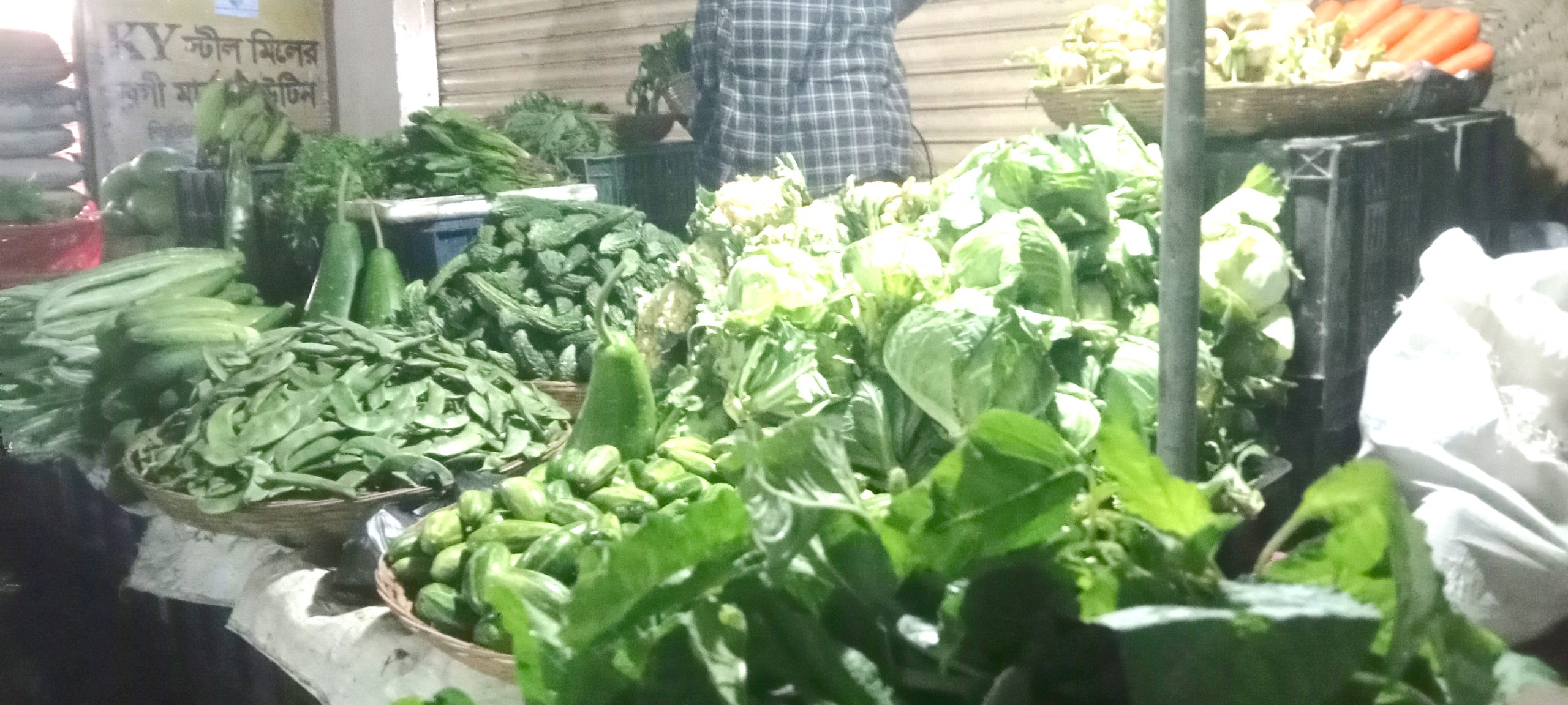 এতে দেখা যায় বাজারে আসা শীতকালীন লালশাক আড়ৎে ৪০ থেকে ৫০ টাকা কেজি বিক্রি হলেও খুচরা বাজারে তা বিক্রি হচ্ছে সর্বোচ্চ ৮০ টাকা, সিম আড়ৎে ৯০ থেকে ১০০ টাকা কেজি হলেও খুচরা বিক্রি হচ্ছে ১৫০ থেকে ২০০ টাকা পর্যন্ত , বেগুন ৮০ টাকা, মুলা ৭০ টাকা, ফুলকপি আড়ৎে ৪০ থেকে ৫০ টাকা বিক্রি হলেও খুচরা বিক্রি হচ্ছে ১২০ টাকা। কোথাও আবার বিক্রি হচ্ছে ৬০ টাকা কেজিতেও। টমেটো ১২০ থেকে ১৫০ টাকা, লাইশাক ৭০ টাকা, মুলার শাক ৭০ টাকা, বাঁধাকপি আড়ৎে ৪০ থেকে ৫০ টাকা কেজি হলেও খুচরা বিক্রি হচ্ছে ৮০ টাকা, আলু ৫৬ টাকা, কিছুদিন আগেও পুঁইশাকের কেজি ৩০ টাকা বিক্রি হয়েছে। সেই পুইশাক বিক্রি হচ্ছে ৫০ টাকা কেজিতে , কড়লা ৮০ থেকে ১০০ টাকা, লাউ ছোট থেকে মাঝারী আড়ৎে ৪০ টাকা হলেও খুচরা বাজারে ১০০ টাকা পর্যন্ত , কাঁচামরিচ ২০০ টাকা, গত বৃহস্পতিবারে ৭০ টাকা কেজিতে পেঁয়াজ হলেও একদিনের ব্যবধানে শনিবার ১৫ টাকা কেজিতে বেড়ে সব্ােচ্চ ৮৫ টাকা কেজিতে বিক্রি হয়েছে। সর্বশেষ সোমবার ৩০ অক্টোবর ১০০ টাকা কেজিতে পেয়াজ বিক্রি করতে দেখা যায় ব্যবসায়ীদের। ঝিঙে আড়ৎে ৪৫ টাকা হলেও খুচরা বিক্রি হচ্ছে ৮০ টাকা, ঢেঁড়শ ৬০ টাকা ও পেঁপে ৪০ টাকা।