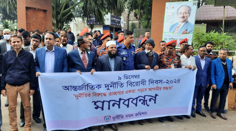 এর আগে সার্কিট হাউসে আন্তর্জাতিক দুর্নীতি দিবস উপলক্ষে জাতীয় পতাকা উত্তলোন করেন জেলা প্রশাসক মোঃ ইসরাইল হোসেন এবং কমিশনের পতাকা উত্তলোন করেন দুর্নীতি দমন কমিশনের সহকারী পরিচালক মোঃ সাইফুর রহমান, জেলা দুর্নীতি কমিটির সাধারণ সম্পাদক এডভোকেট শাহ্ আখলাকুর আম্বিয়া। পরে আদালত সড়কে মানববন্ধন অনুষ্ঠিত হয়।