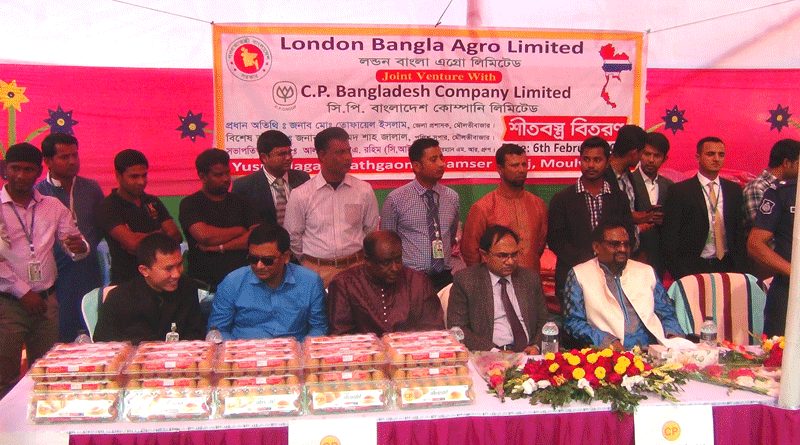 ৬ জানুয়ারি সোমবার সকালে লন্ডন বাংলা এগ্রো লিমিটেড ও সিপি বাংলাদেশ কোম্পানী লিমিটেড এর যৌথ উদ্যেগে প্রধান অতিথি হিসেবে শীতবস্ত্র বিতরণ করেন জেলা প্রশাসক মোঃ তোফায়েল ইসলাম।