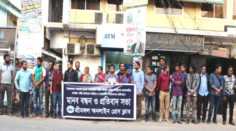রাজনগরে সাংবাদিক শিমুল হত্যার প্রতিবাদে মানববন্ধন