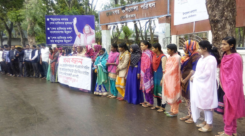 রাজনগরে নারী ইউপি সদস্যেকে পুরুষ সদস্যের মারধরের প্রতিবাদে মানববন্ধন-স্মারকলিপি