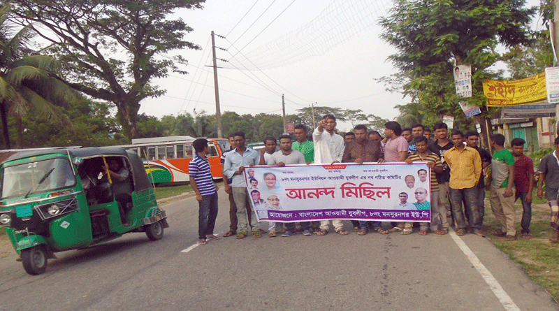 মনসুর নগর যুবলীগ এর উদ্যোগে আনন্দ মিছিল