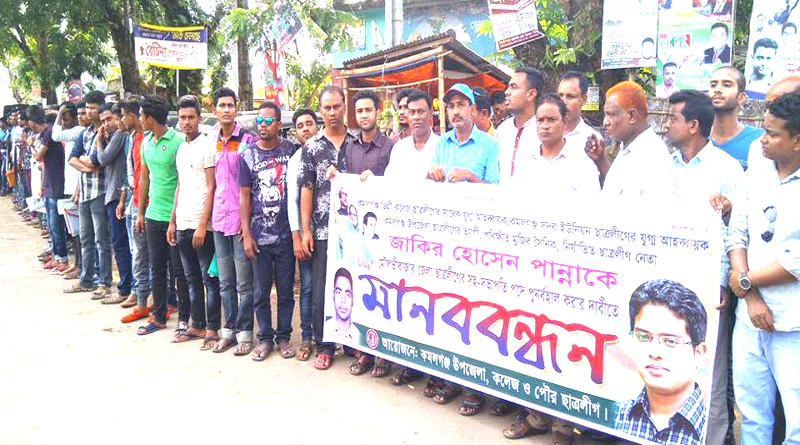 (ভিডিওসহ)ছাত্রলীগ নেতা পান্নাকে জেলা ছাত্রলীগের সহ সভাপতি পদে পূণর্বহালের দাবিতে কমলগঞ্জে ছাত্রলীগের মানববন্ধন ও বিক্ষোভ মিছিল