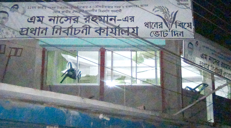 স্টাফ রিপোর্টার॥ মৌলভীবাজার-৩ (মৌলভীবাজার সদর ও রাজনগর) আসনে ঐক্যফ্রন্ট মনোনীত ধানের শীষের প্রার্থী সাবেক অর্থ ও পরিকল্পনা মন্ত্রী এম সাইফুর রহমানের পুত্র সাবেক এমপি নাসের রহমানের গাড়িসহ ৭টি গাড়ি ভাংচুর ও প্রধান নির্বাচনী কার্যালয় ভাংচুর ও অগ্নিসংযোগ করা হয়েছে। শুক্রবার রাত ৯টার দিকে এ ঘটনাটি ঘটে।