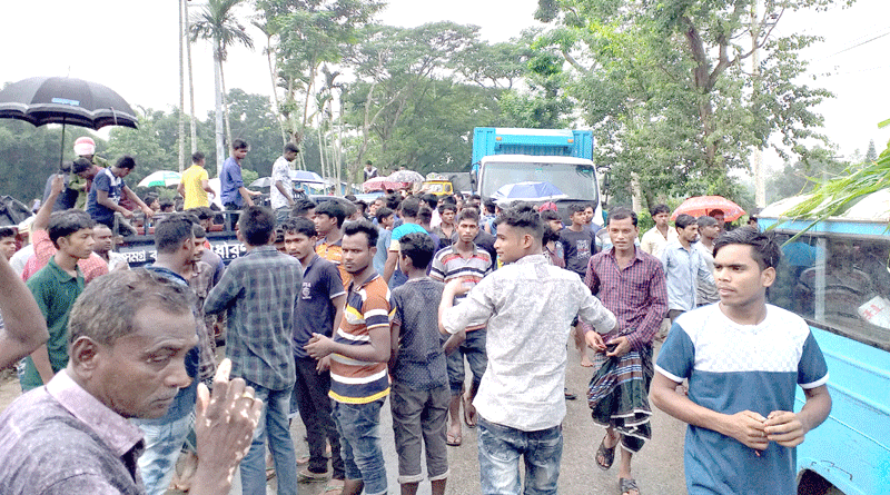 এ সময় ড্রাইভারের কাছে চাঁদা দাবি করে এবং লাশবাহী গাড়িটিকে আটকে রাখে ও চালককে মারধর করা হয়। প্রতিবাদে শ্রমিকরা সড়ক অবরোধ করে রাখে। অবরোধের কারনে আঞ্চলিক মহাসড়কে দুই পাশে প্রায় পাঁচ কিলোমিটার এলাকাজুড়ে গাড়ীর দীর্ঘ লাইন সৃষ্টি হয়। এতে চরম দুর্ভোগে পড়েন সাধারণ যাত্রীরা।