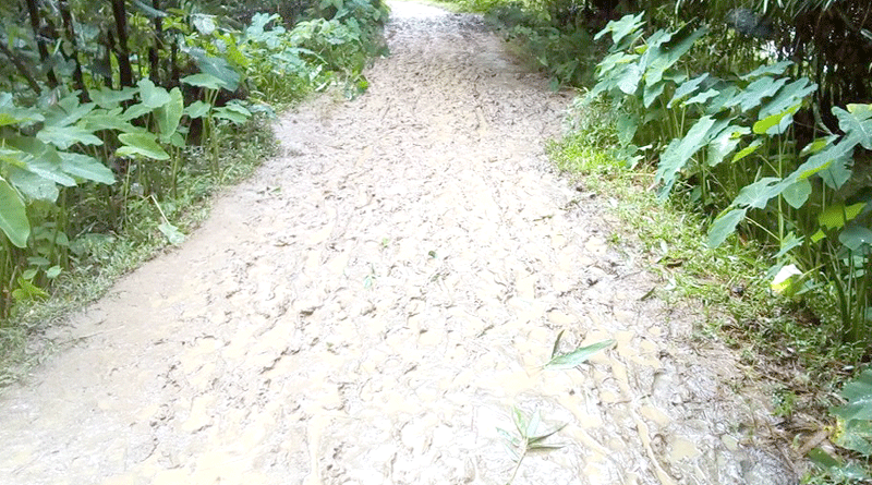 বড়লেখার বর্নি ইউপির শিলকুরা-মিহারী কাঁচা রাস্তা যেন চাষ দেয়া ধান ক্ষেত