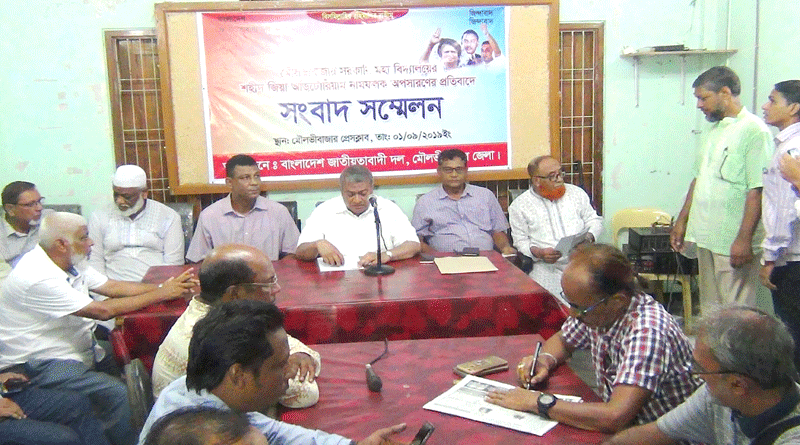 সভায় বক্তারা মৌলভীবাজার সরকারি কলেজ অডিটোরিয়ামে ছাত্রলীগ কর্তৃক শহীদ জিয়ার নামফলক অপসারনের তীব্র নিন্দা জানিয়ে আগামি এক সপ্তাহের মধ্যে নামফলকটি পুন:স্থানের আল্টিমেটাম প্রদান করেন।