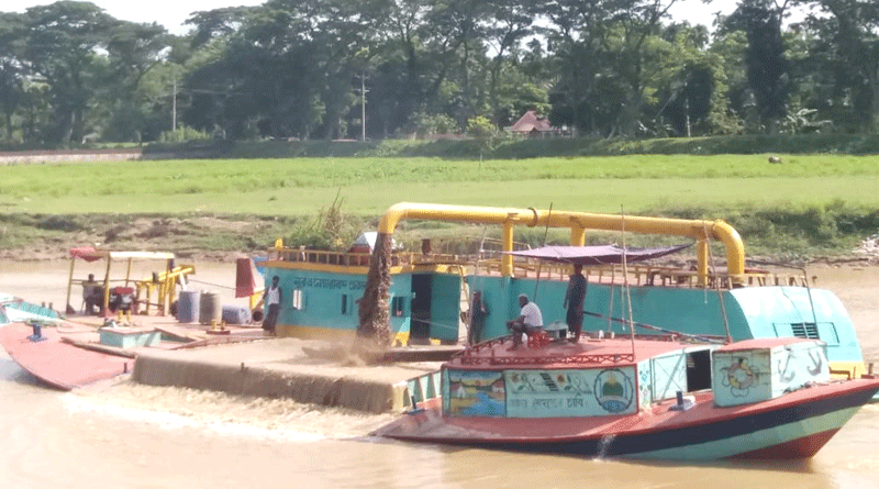 ড্রেজার দিয়ে বালু উত্তোলনের অভিযোগ ভাঙনের মুখে ৫ গ্রাম