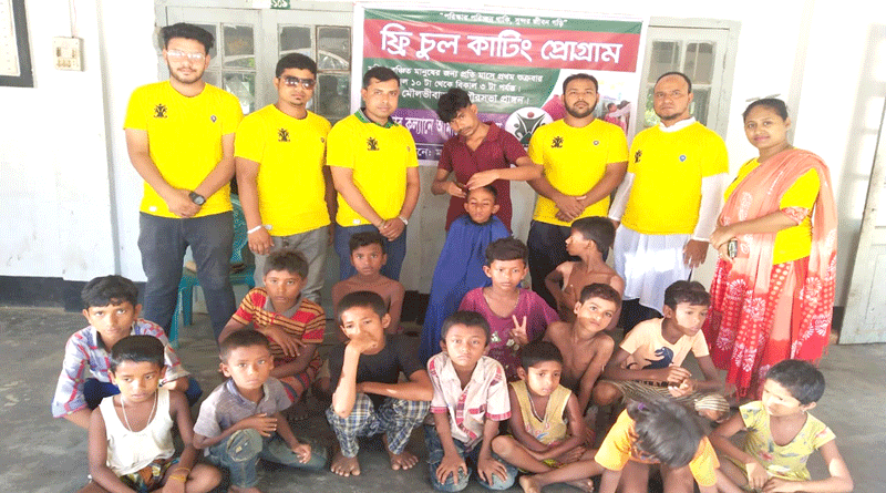 সুবিধা বঞ্চিত প্রায় অর্ধশতাধিক বাচ্চাদের ফ্রি চুল কাটা,নখকাটা, সাবান ও স্যাম্পু দিয়ে গোসল করিয়ে দেয়া হয়।