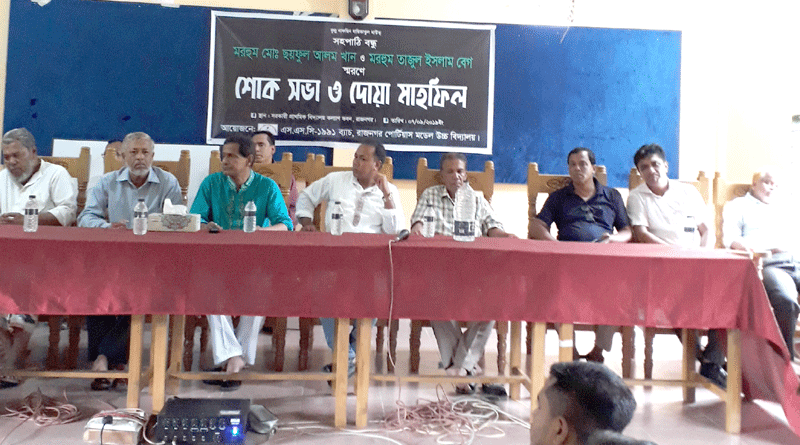 শনিবার ৭ সেপ্টেম্বর বিকেলে এসএসসি ১৯৯১ ব্যাচ বন্ধুের আয়োজনে সরকারি প্রাথমিক শিক্ষক কল্যাণ ভবনে ৯১ ব্যাচের ছাত্র প্রবাসী জাহাঙ্গীর বখতের সভাপতিত্বে ও শংকর দুলাল দেবের সঞ্চালনায় শোক সভায় অতিথি হিসেবে উপস্থিত থেকে বক্তব্য রাখেন মনসুরনগর ইউনিয়নের চেয়ারম্যান ও নব-নির্বাচিত পোর্টিয়াস মডেল উচ্চ বিদ্যালয়ের ম্যানেজিং কমিটির সভাপতি মিলন বখত, উপজেলা আওয়ামীলীগের সাংগঠনিক সম্পাদক ফয়ছল আহমদ, উপজেলা বিএনপির সাধারণ সম্পাদক এম এ হাকিম বক্স সুন্দর, রাজনগর প্রেসক্লাবের সভাপতি আউয়াল কালাম বেগ, রাজনগর বাজারের ব্যবসায়ী আশরাফ আলী, ৯১ ব্যাচের ছাত্র সিলেটে কর্মরত সিআইডি কর্মকর্তা রিপন দেব, প্রাথমিক বিদ্যালয়ের শিক্ষক জয়ন্ত দেব, ব্যবসায়ী আলমঙ্গীর হোসেন, জিতু বক্স, মরহুম তাজুল ইসলাম বেগের ছোট ভাই নুরুল ইসলাম বেগ প্রমূখ। সভা শেষে মরহুম ছয়ফুল আলম খান ও মরহুম তাজুল ইসলাম বেগের আত্মার মাগফিরাত কামনা করে দোয়া ও শিরনি বিতরণ করা হয়।