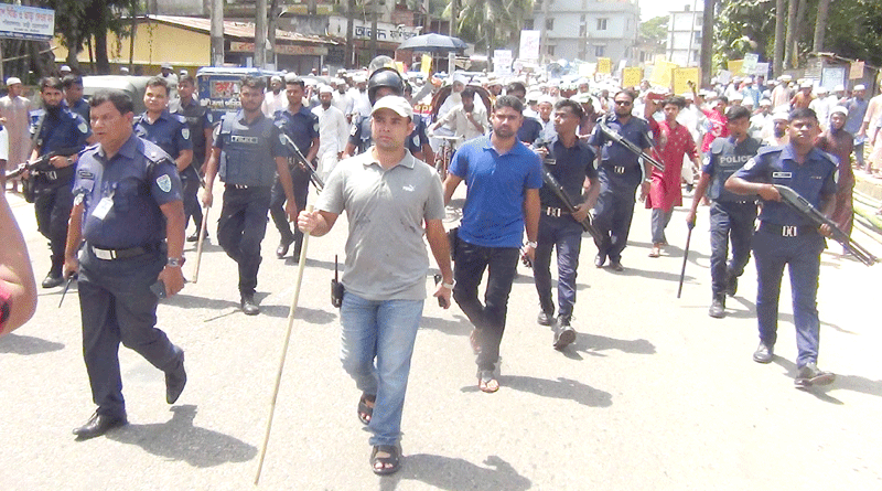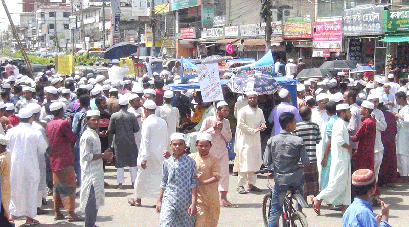 শনিবার ১৪ সেপ্টেম্বর দুপুরের দিকে শহরের টাউন ঈদগাহ প্রাঙ্গনে অনুষ্ঠিত হয় বিক্ষোভ সমাবেশ। মুফতি হাবিবুর রহমান ও মাওলানা মুজাহিদ আহমদের যৌথ সঞ্চালনায় সমাবেশে সভাপত্বি করেন, ওলামা পরিষদের সভাপতি ও জেলার শীর্ষ আলেম শাইখুল হাদিস মাওলানা আব্দুল বারী ধর্মপুরী।
