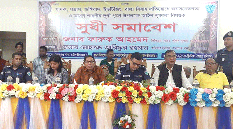 কমলগঞ্জে পুলিশ সুপারের সাথে আইন শৃংখলা বিষয়ক সুধী সমাবেশ অনুষ্ঠিত