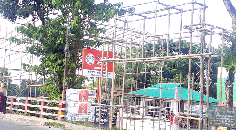 স্টাফ রিপোর্টার॥ মৌলভীবাজার শহরের মনুব্রীজ সংলগ্ন মুক্তিযুদ্ধ স্মৃতিস্তম্ভ ঘেষে দূর্গাপূজার মন্ডপ তৈরীর কাজ চলছে। এনিয়ে জেলার মুক্তিযোদ্ধাসহ সচেতন মহলের মধ্যে বিরুপ প্রতিক্রিয়ার সৃষ্টি হয়েছে। স্মৃতি স্তম্ভের পবিত্রতা রক্ষা নিয়ে প্রশ্ন সৃষ্টি হয়েছে বিভিন্ন মহলে। তারপরেও অনেকটা প্রভাব বিস্তার করে মন্ডপ তৈরির কাজ চলছে।