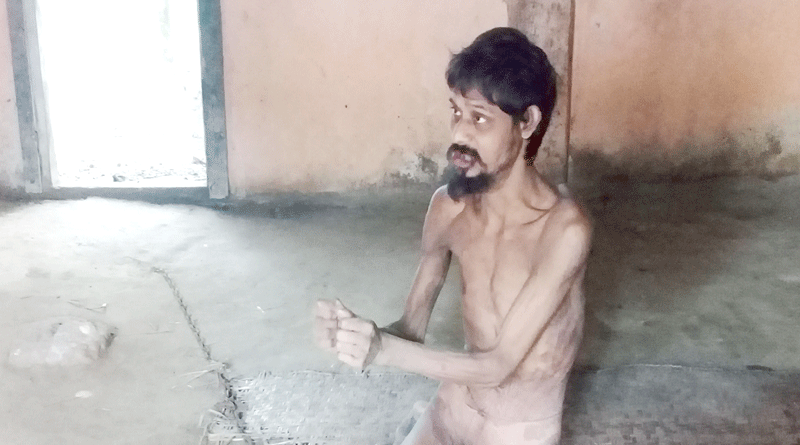 প্রনীত রঞ্জন দেবনাথ॥ কমলগঞ্জ উপজেলার শমশেরনগর ইউনিয়নের সতিঝিরগ্রামের রেকাত মিয়ার একমাত্র ছেলে মানসিক সমস্যাগ্রস্ত বেলাল আহমদকে শিকলে বেঁধে প্রায় দু’বছর ধরে গৃহবন্দি রাখা হয়েছে। ঘরের নোংরা আর উলঙ্গ পরিবেশে গরু থাকার ঘরেই দুই বছর ধরেই দিন কাটছে বেলালের। ২৪ সেপ্টেম্বর মঙ্গলবার দুপুরে সরেজমিনে গিয়ে গৃহবন্দি শিকলে বাঁধা বেলালের জীবন ধারণের এই চিত্র দেখা যায়।