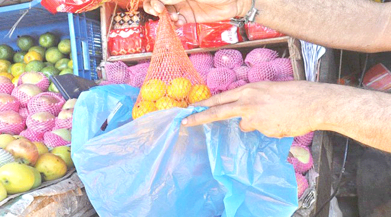 সরেজমিনে ঘুরে দেখা যায় শহরের নতুন বাজার পুরান বাজার সহ আশপাশের দোকানপাটে গ্রাহকদের হাতে পলিথিন ব্যাগ সরবরাহ করা হচ্ছে।