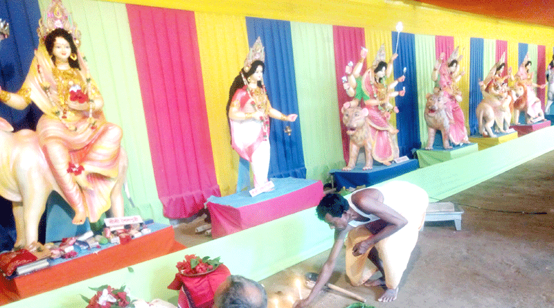 ৫ দিন বাকী থাকতেই একটি মন্ডপে দুর্গা পূজা শুরু অপর মন্ডপে স্থায়ী দূর্গা প্রতিমা প্রতিষ্টা