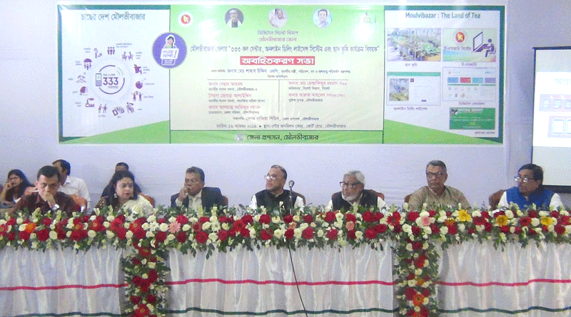মৌলভীবাজার জেলা প্রশাসক নাজিয়া শিরিনের সভাপতিত্বে ৩৩৩ কল সেন্টার, অনলাইন ডিলিং লাইসেন্স সিস্টেম ও ছাদ কৃষি কার্যক্রম বিষয়ক অবহিত করন সভায় প্রধান অতিথি হিসেবে উপস্থিত ছিলেন বন পরিবেশ ও জলবায়ু মন্ত্রী সাহাব উদ্দিন এমপি। এছাড়াও উপস্থিত থেকে বক্তব্য রাখেন মৌলভীবাজার সদর আসনের এমপি নেছার আহমদ, জেলা পরিষদ চেয়ারম্যান বীরমুক্তিযোদ্ধা আজিজুর রহমান, সিলেট বিভাগীয় কমিশনার মোস্তাফিজুর রহমান পিএএ, পুলিশ সুপার ফারুক আহমদ পিপিএম (বার), এটুআই এর উপ-সচিব আনোয়ারুল আমিন ও এটুআই এর উপপরিচালক আজিম উদ্দিন, অতিরিক্ত জেলা প্রশাসক মল্লিকা দে।