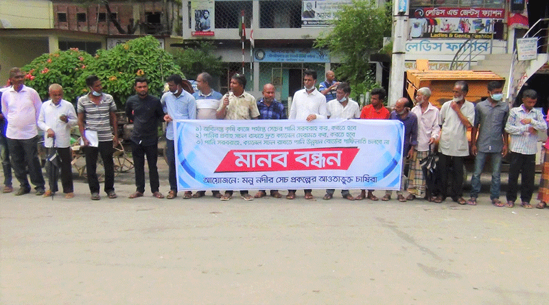 (ভিডিওসহ) মৌলভীবাজারে মনু প্রকল্পের সেচ পাম্প চালু ও ক্যানেল মেরামতের দাবিতে মানববন্ধন