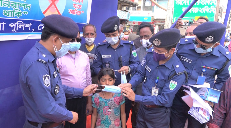 (ভিডিওসহ) মৌলভীবাজার জেলা পুলিশ করোনার দ্বিতীয় ঢেউ মোকাবেলায় ‘মাস্ক সপ্তাহ’ চালু করেছে