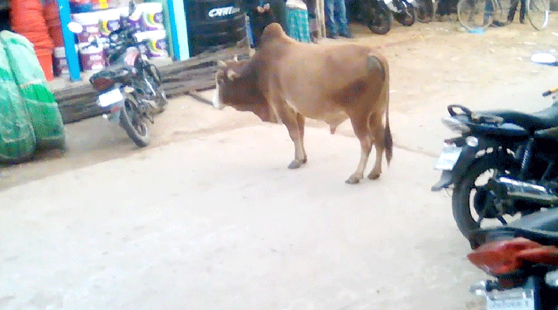 প্রতক্ষ্যদর্শী ও স্থানীয়রা বলেন, বিকেলে ষাড়টি বাজারে আসলে কে বা কারা ধমক দেন এবং প্রহার করেন এতে ষাড়টি ক্ষেপে যায়। সে কারনে হয়তো বা ষাড়টি অভিমান করে প্রায় আধা ঘন্টা রাস্তায় দাড়িয়ে থাকে। সে সময় ভয়ে কেউ রাস্তা পারাপার হোন নি। পরে মালিককে খবর দিলে তিনি এসে ষাড়টি নিয়ে যান।