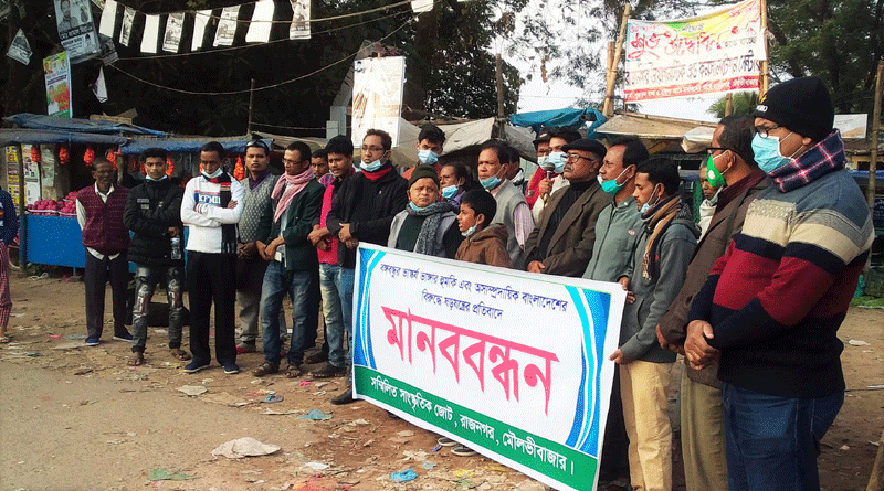 রাজনগরে সাংস্কৃতিক জোটের উদ্যোগে বঙ্গবন্ধুর ভাস্কর্য ভাংগার প্রতিবাদে মানববন্ধন