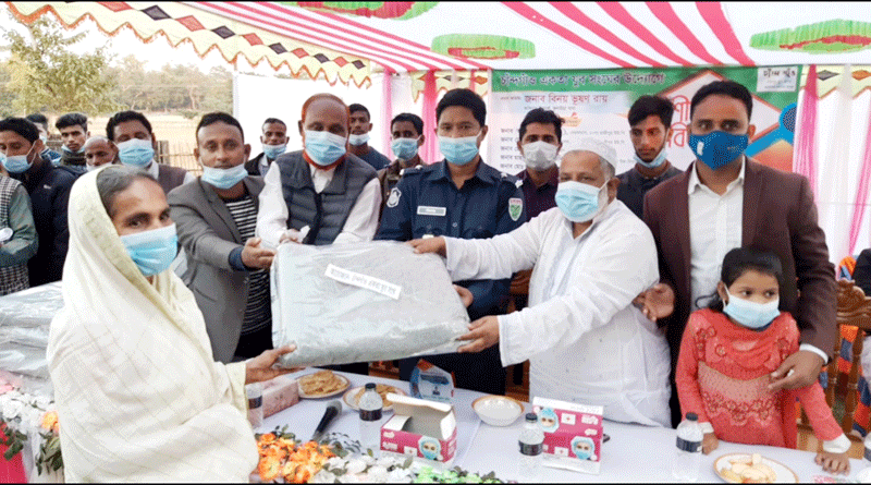 কুলাউড়ার হাজিপুরে চাঁন্দগাঁও একতা যুব সংঘের শীতবস্ত্র বিতরণ
