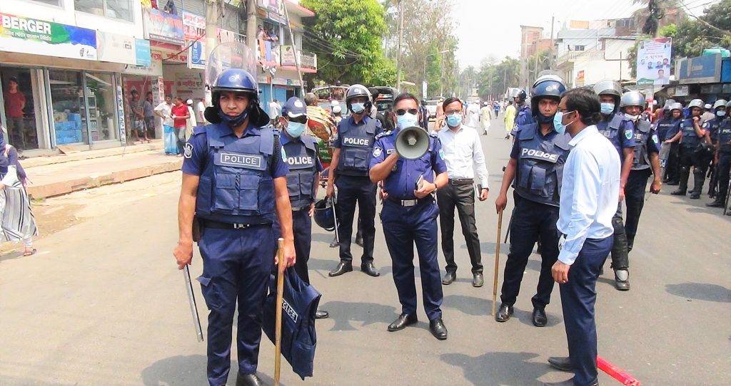 মডেল থানার অফিসার ইনচার্জ ইয়াছিনুল হক জানান, পুলিশ সুপার মোহাম্মদ জাকারিয়ার নেতৃত্বে পরিস্থিতি শান্তিপূর্ণ রাখতে মাঠে পুলিশ সদস্যরা কাজ করে। শহরে অতিরিক্ত পুলিশ মোতায়েন করা হয়েছে।