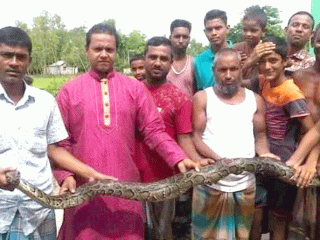 শ্রীমঙ্গলে ধানক্ষেত থেকে অজগর সাপ উদ্ধার