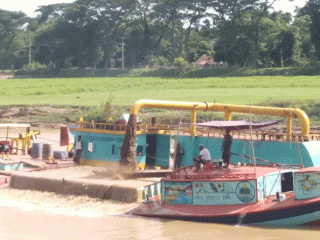 ড্রেজার দিয়ে বালু উত্তোলনের অভিযোগ ভাঙনের মুখে ৫ গ্রাম