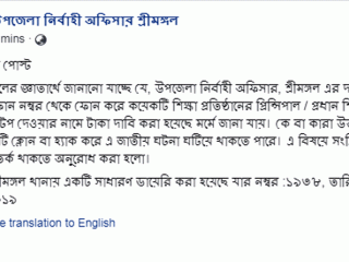 শ্রীমঙ্গল ইউএনও’র মোবাইল নাম্বার ক্লোন : বিভিন্ন শিক্ষা প্রতিষ্ঠানে টাকা দাবি