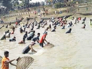 জুড়ীর কন্টিনালা নদীতে পলো বাওয়া উৎসব